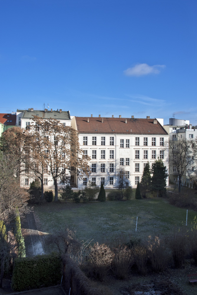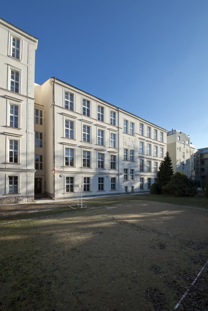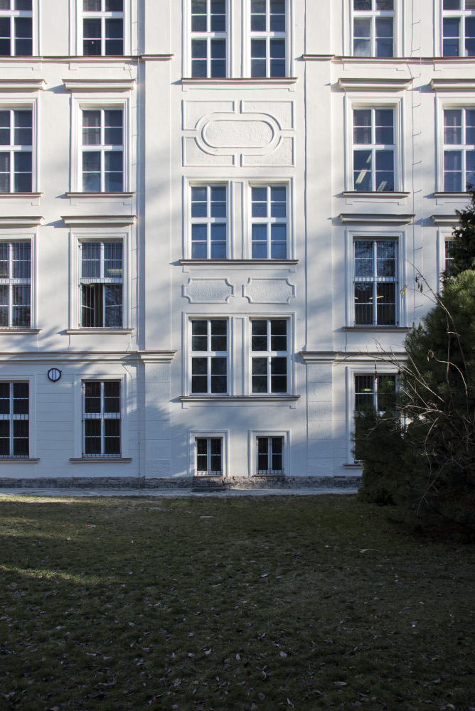 Secesní dům z prvního desetiletí 20. století. jako projekt Antonína Pfeiffera provedl známý stavitel Antonín Tebich. Střední zdravotnická škola prošla rekonstrukcí ve svém uličním průčelí již v roce 2015, a to také pod vedením naší společnosti PRIVILEG spol.s.r.o. Díky perfektní obnově a provedení restaurátorských prací na průčelí s létajícím světlonošem a moravskou orlicí jsme byli Střední zdravotnickou školou znovu vybráni jako zhotovitel obnovy fasád dvorního traktu dvou přiléhajících budov samotné VESNY. Je správné, že takto významnou stavbu realizoval ve dvou etapách stejný dodavatel s totožnými kvalitními materiály a šikovnými štukatéry. Vápenné jádrové omítky, štukové omítky na bázi hydraulického vápna TUBAG a finální nátěr od KEIM farben znovu vytvořil spojení, které na památky patří.