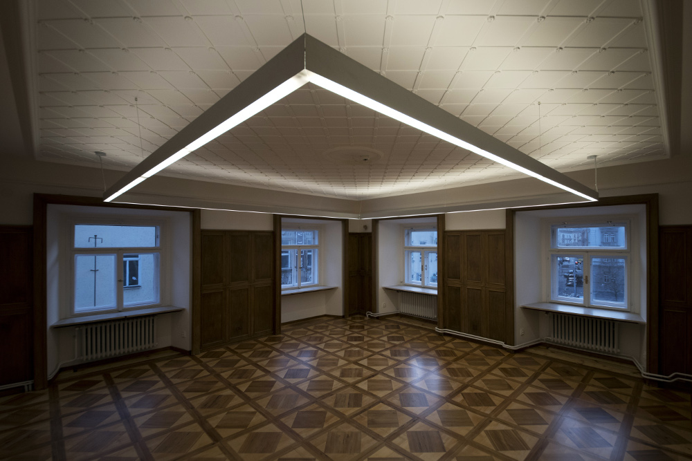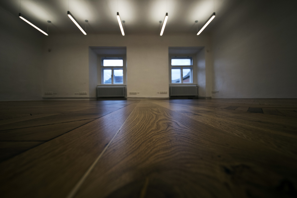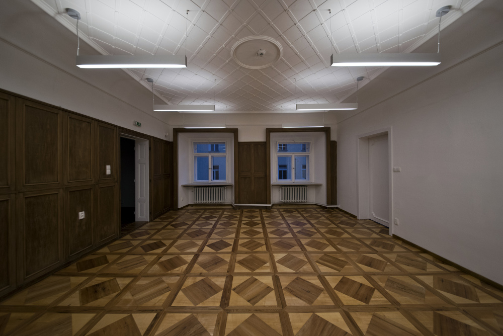 V budově Moravské galerie jsme ve třetím nadzemním podlaží restaurovali dřevěné obklady a kazetové podlahy v několika odstínech a stupních stáří. Současně s těmito úpravami jsme pracovali na repasování špaletových oken a dveří, opravě vápenných omítek a štuků. Na závěr jsme instalovali nové designové osvětlení do rekonstruovaných prostorů.