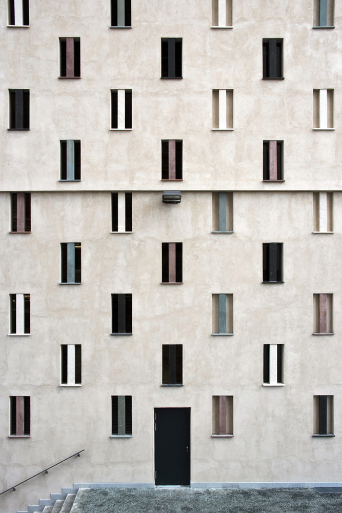Celou plochu fasády parkovacího domu DOMINI PARK jsme realizovali technikou točení a hlazení dřevěnými hoblíky v jednom zátahu. Budova má připomínat tvrz s vápennými materiály TUBAG a skvrnitým probarvením. V otvorech fasády se střídají tři druhy kamenných sloupků.