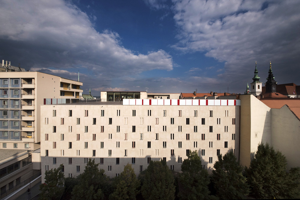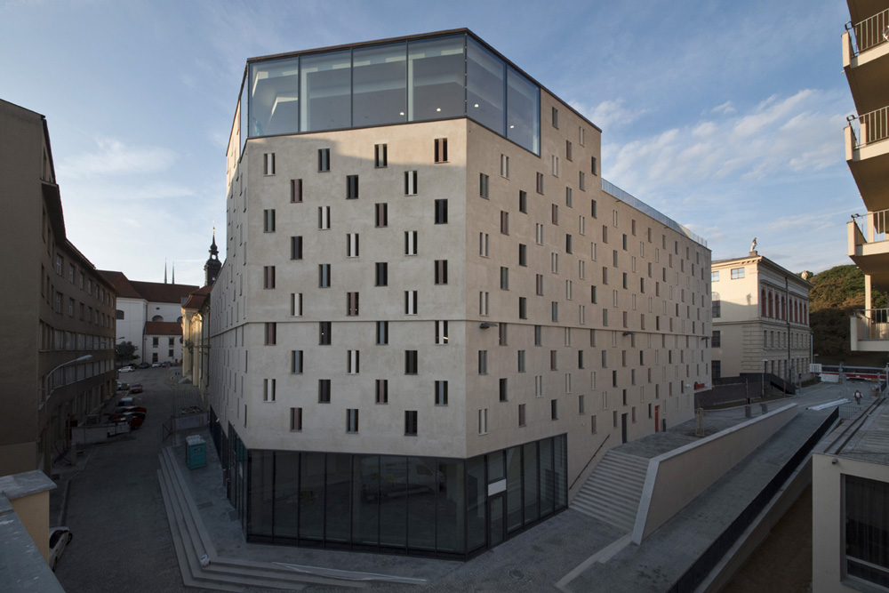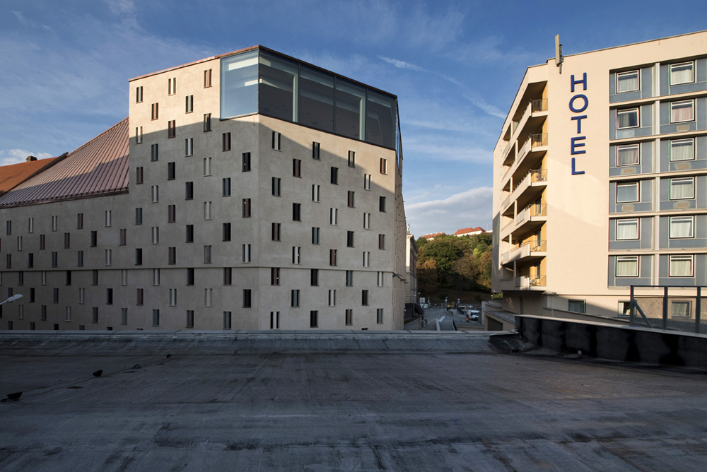 Při práci na povrchové úpravě fasády nového brněnského parkovacího domu jsme využili veškeré naše štukatérské zkušenosti a trpělivost, která byla při náročném úkolu potřeba. Stavba vyrostla v samém centru města, a proto architekt kladl důraz na návaznost novostavby na okolní významné budovy jako Hotel International nebo Uměleckoprůmyslové muzeum. Povrch fasády byl proto architekty zvolen jako vápenný probarvený štuk v okrové barvě.